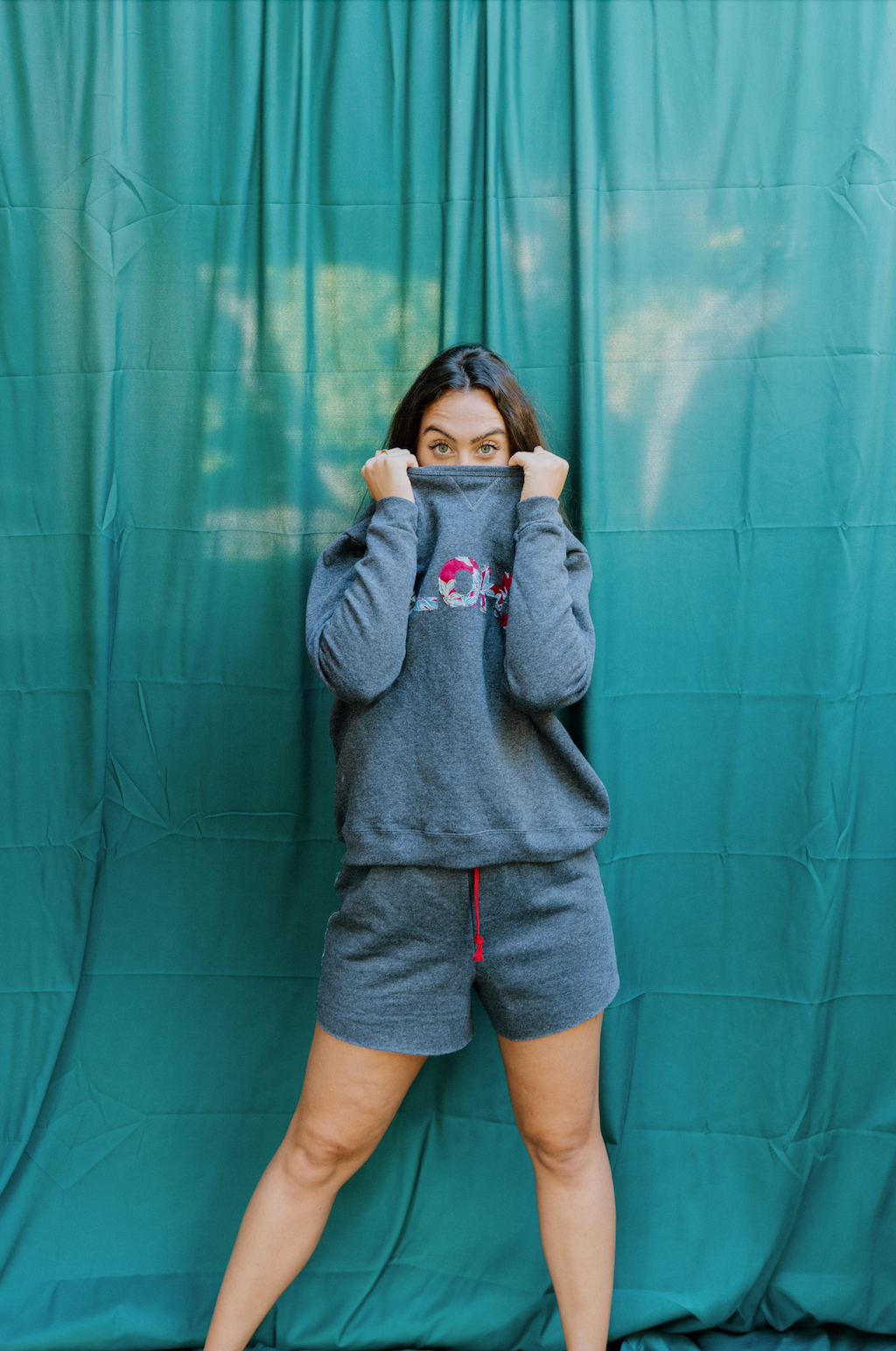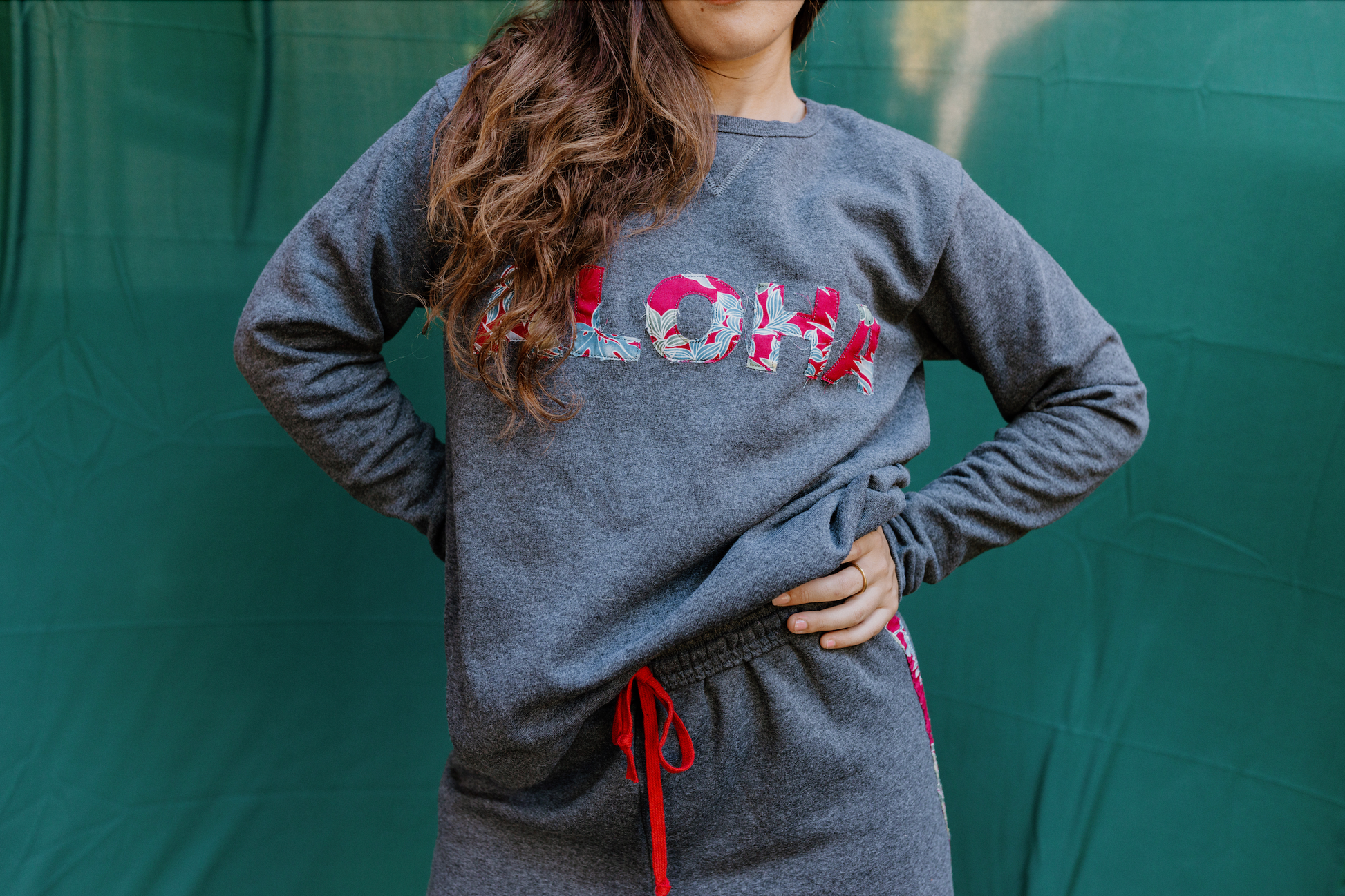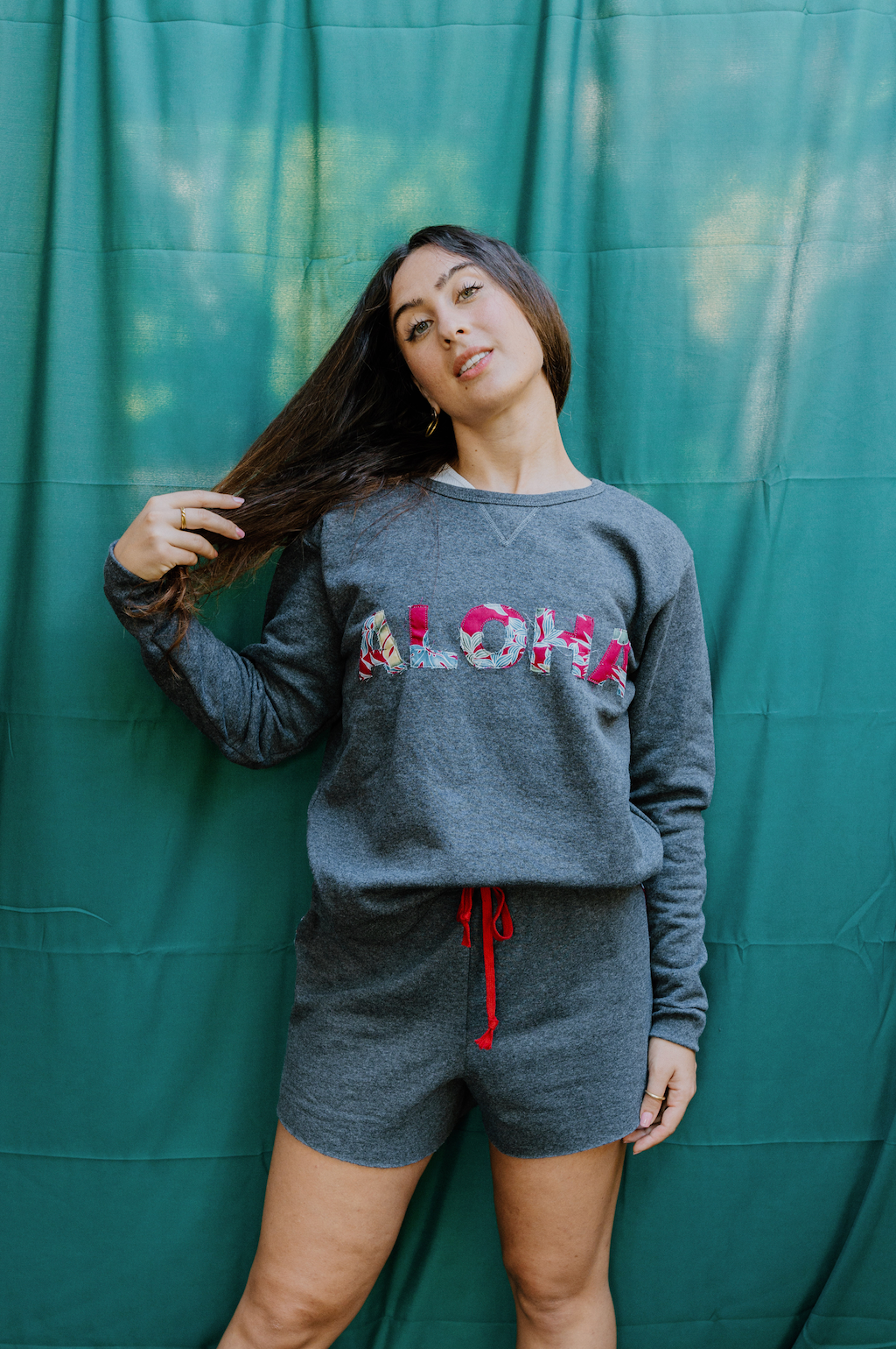 Hand Cut and Sewn here in Hawaii. Made to match our signature ALOHA Patchwork Sweatshirt. Made from recycled polyester and organic cotton this short only gets softer as you wash and wear it.