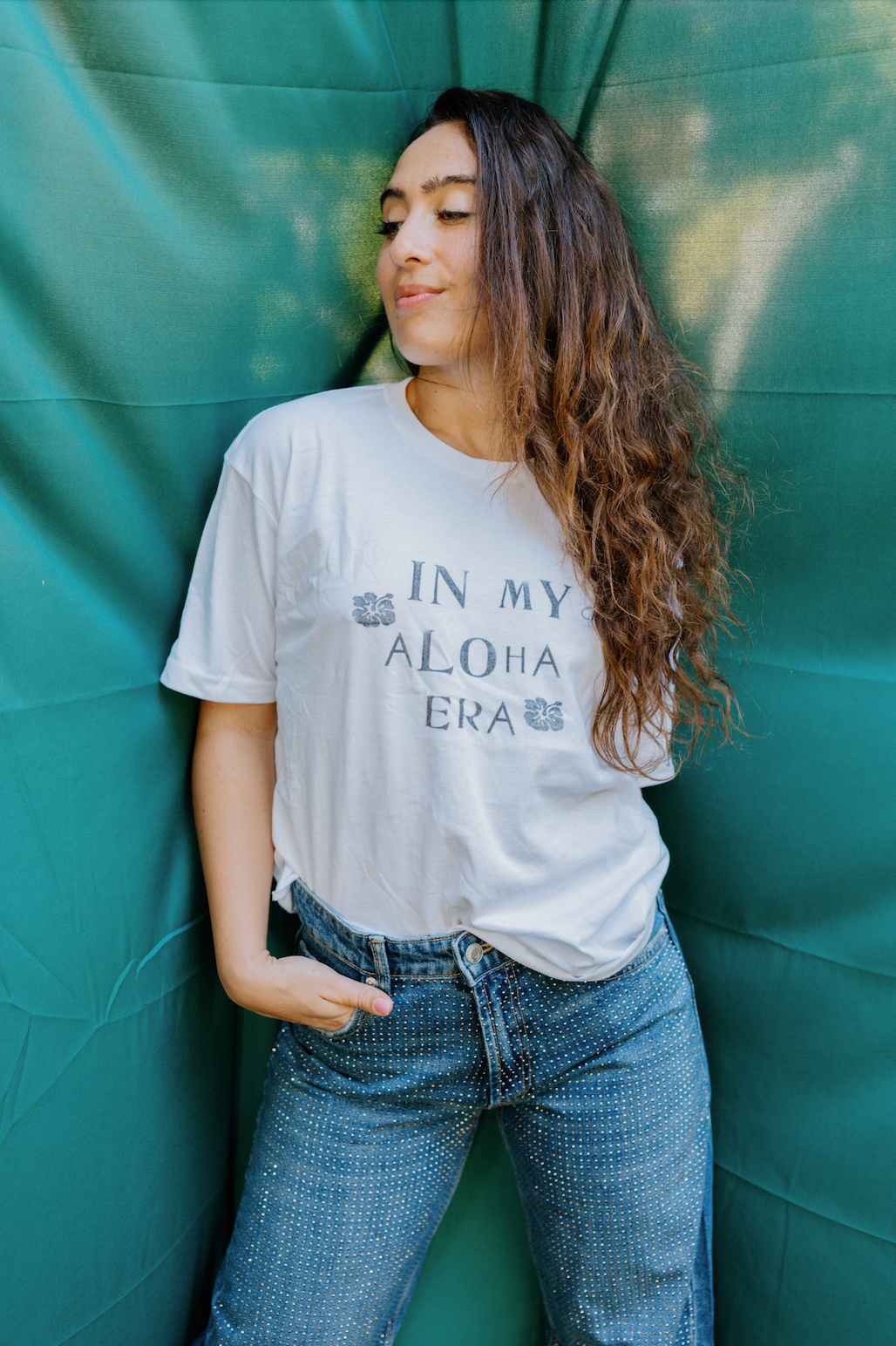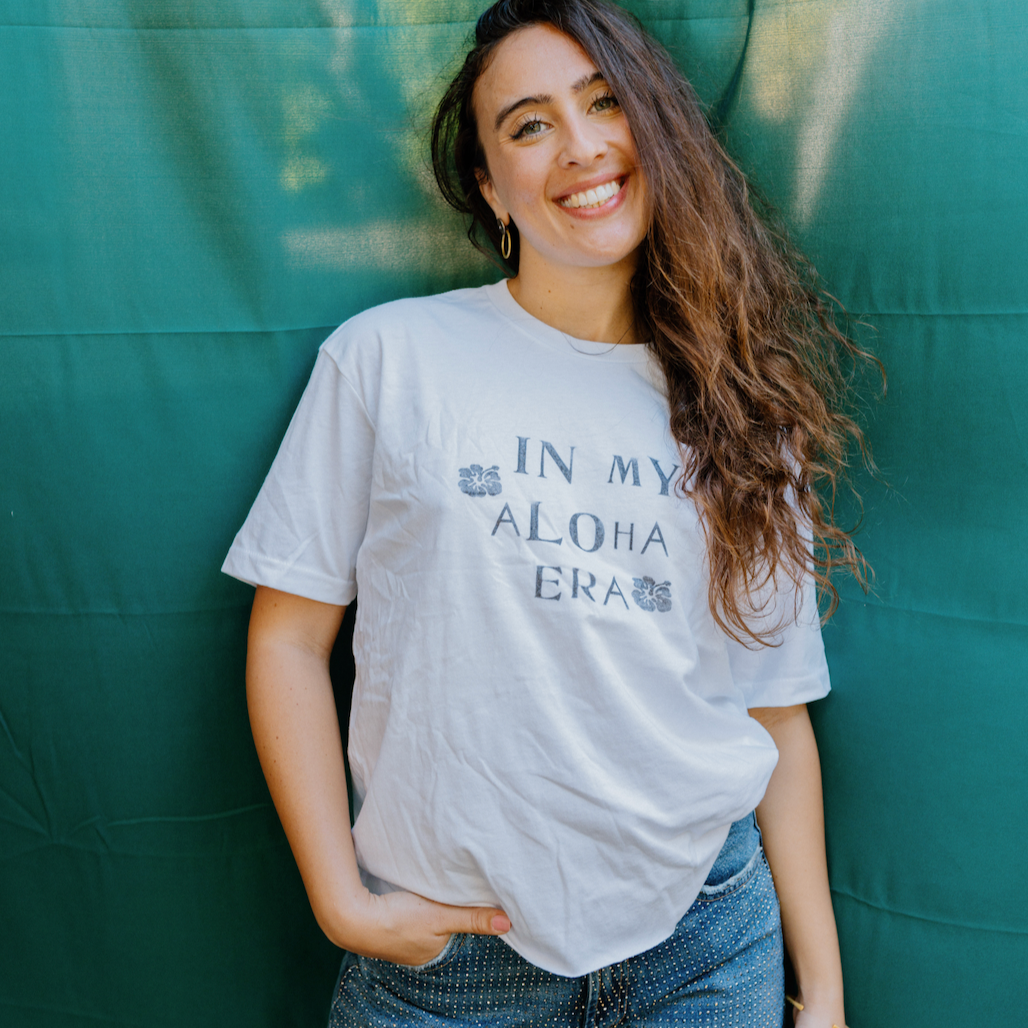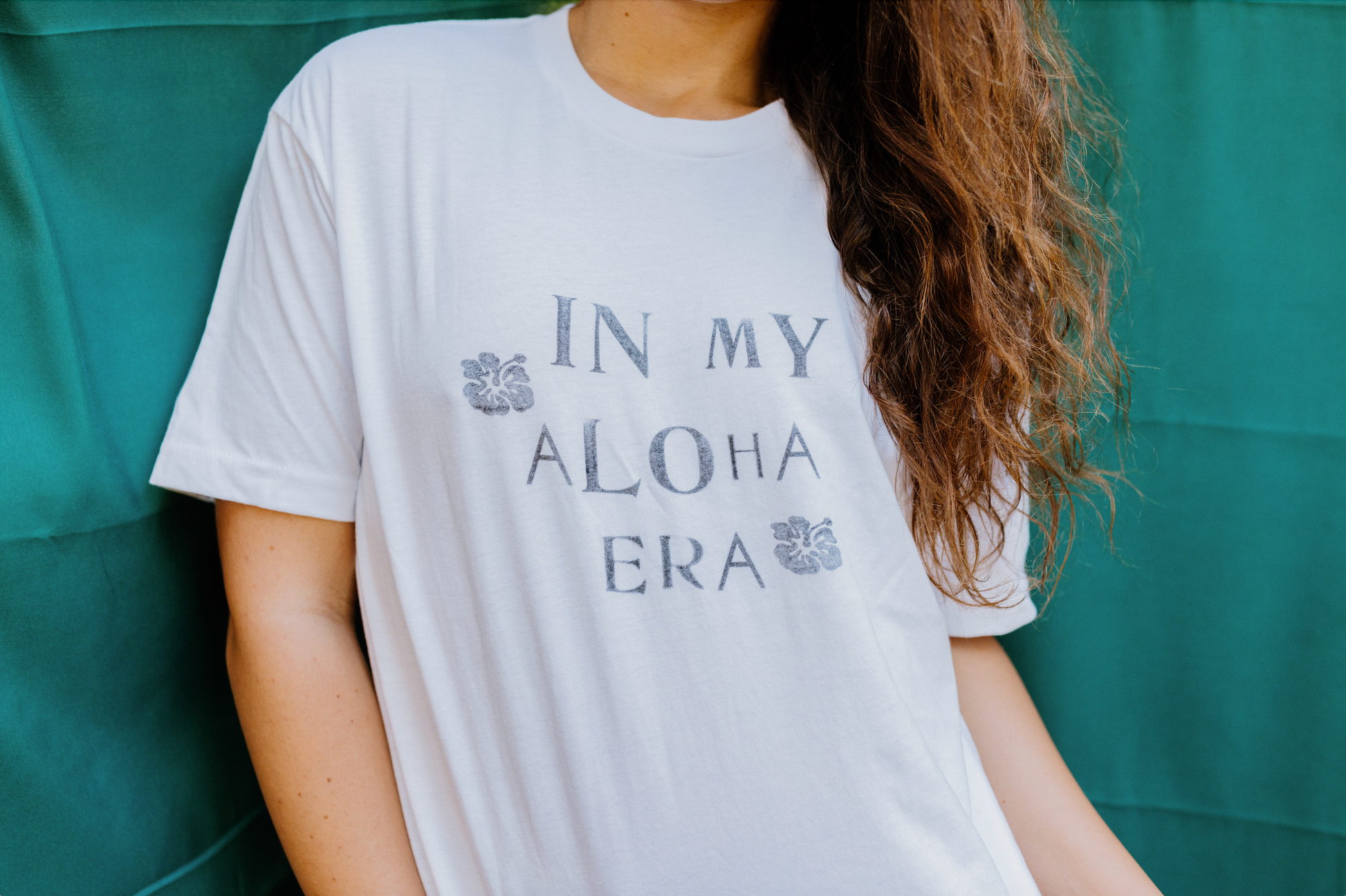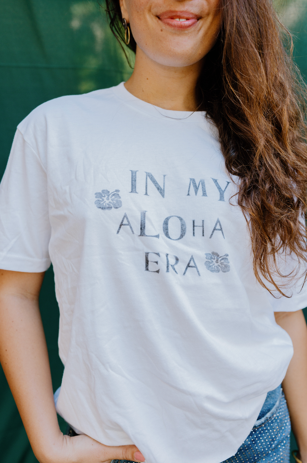 Embrace the new year with our "In My Aloha Era" Cotton T-Shirt! Crafted from 100% premium, breathable cotton, this tee offers ultimate comfort and style for any casual occasion. The vibrant design features the uplifting phrase "In My Aloha Era," a perfect reminder to live life with joy and authenticity.